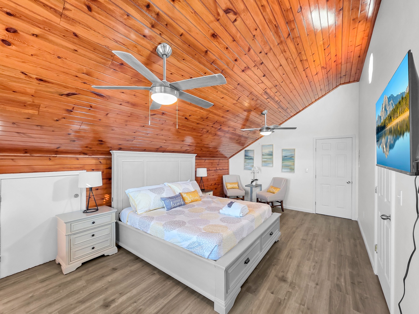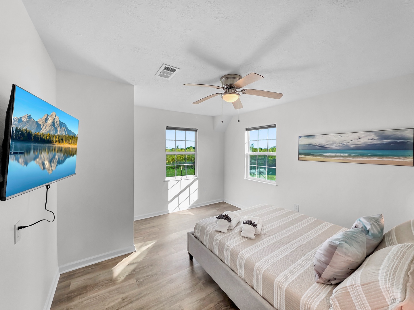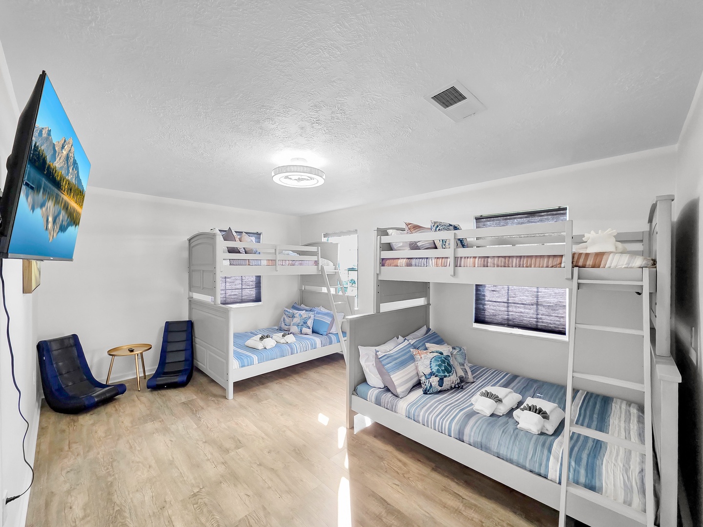 We provide linens and bath towels in every house, and standard beds are made for your arrival. Paper products and cleaning supplies are not included.